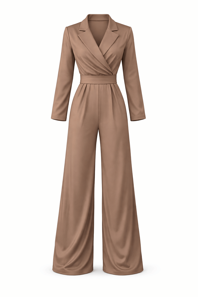 Enterizo de corte elegante con diseño tipo blazer, manga larga y cinturón para ajustar la cintura. Su silueta alarga la figura y lo hace perfecto para eventos, salidas elegantes o un outfit formal con estilo.